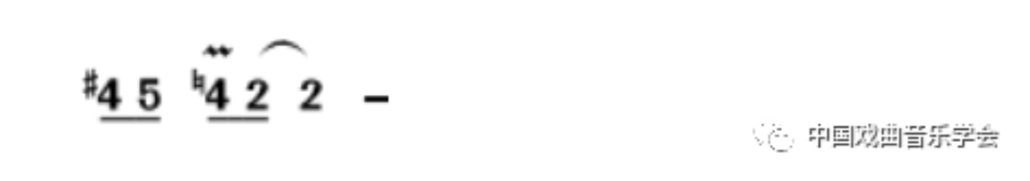 清角在旋律上行时升为变徵,下行时还原为带波音装饰的清角,且立即进行到商音,这样组成了一个颇具个性的旋律动机: