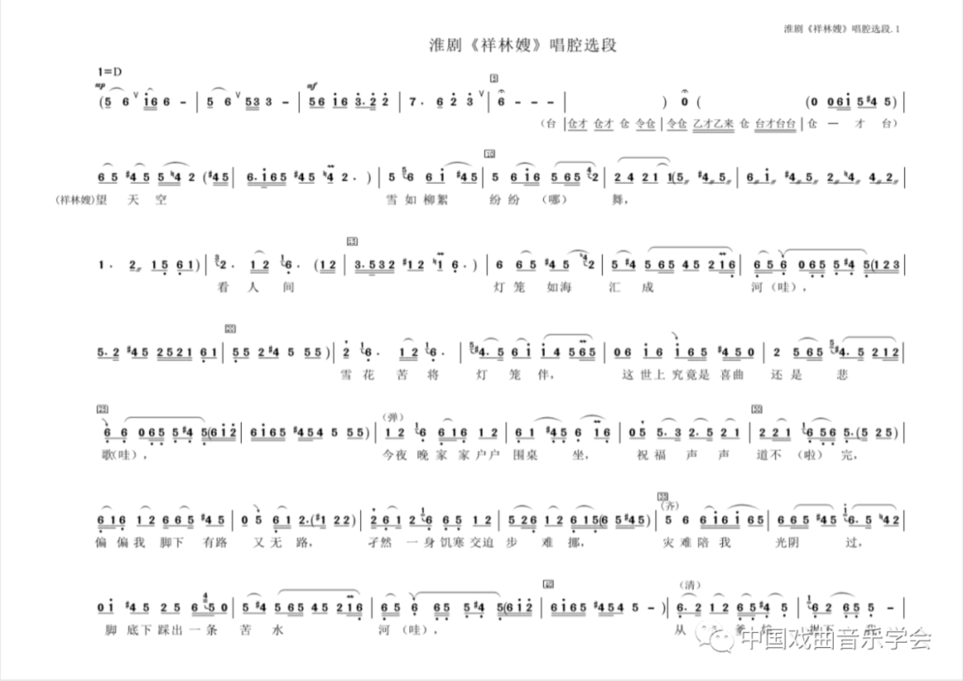 本文试以我创作的淮剧《祥林嫂》中的核心唱段《天问》(演员演唱时的命名,亦名《望天空》——习惯上的以首句唱词命名)为例,谈谈这方面的创作心得,就教于同行专家。