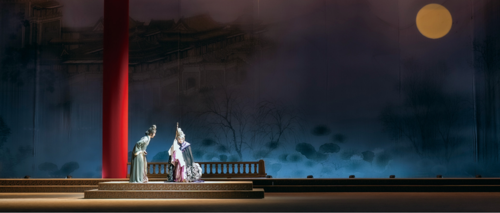 将两个乐句顺序颠倒一下出现,既先是上五度的旋律,然后向下模进再出现在原调性上,伴随着极富感染力的旋律在剧场里回荡,深深地震撼了观众的心,让大家更加深刻地感受到了班昭伟大的一生!